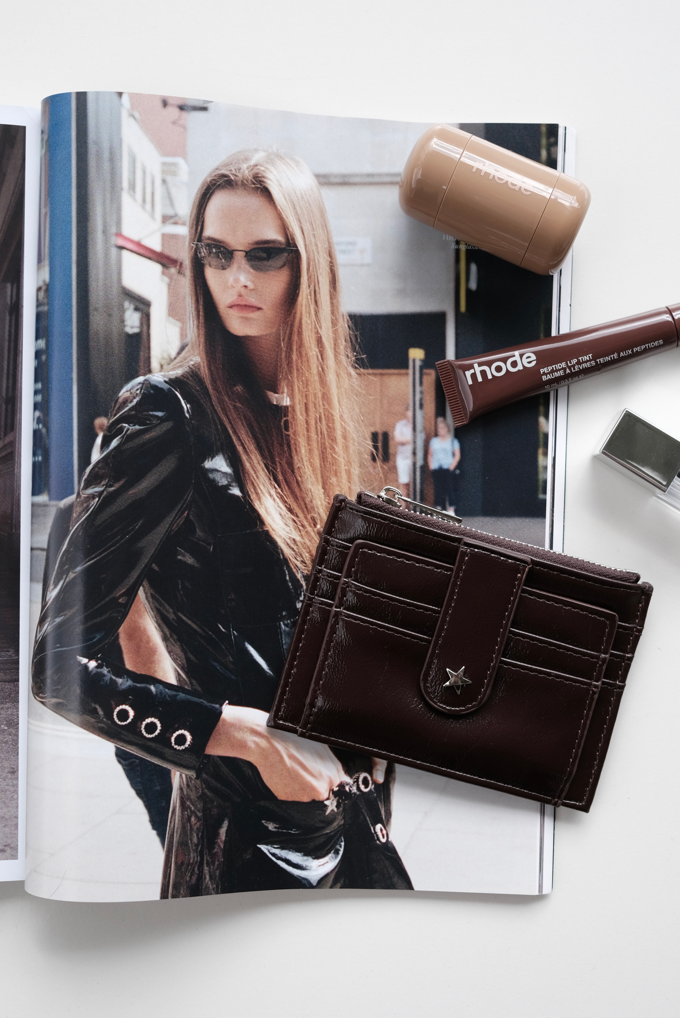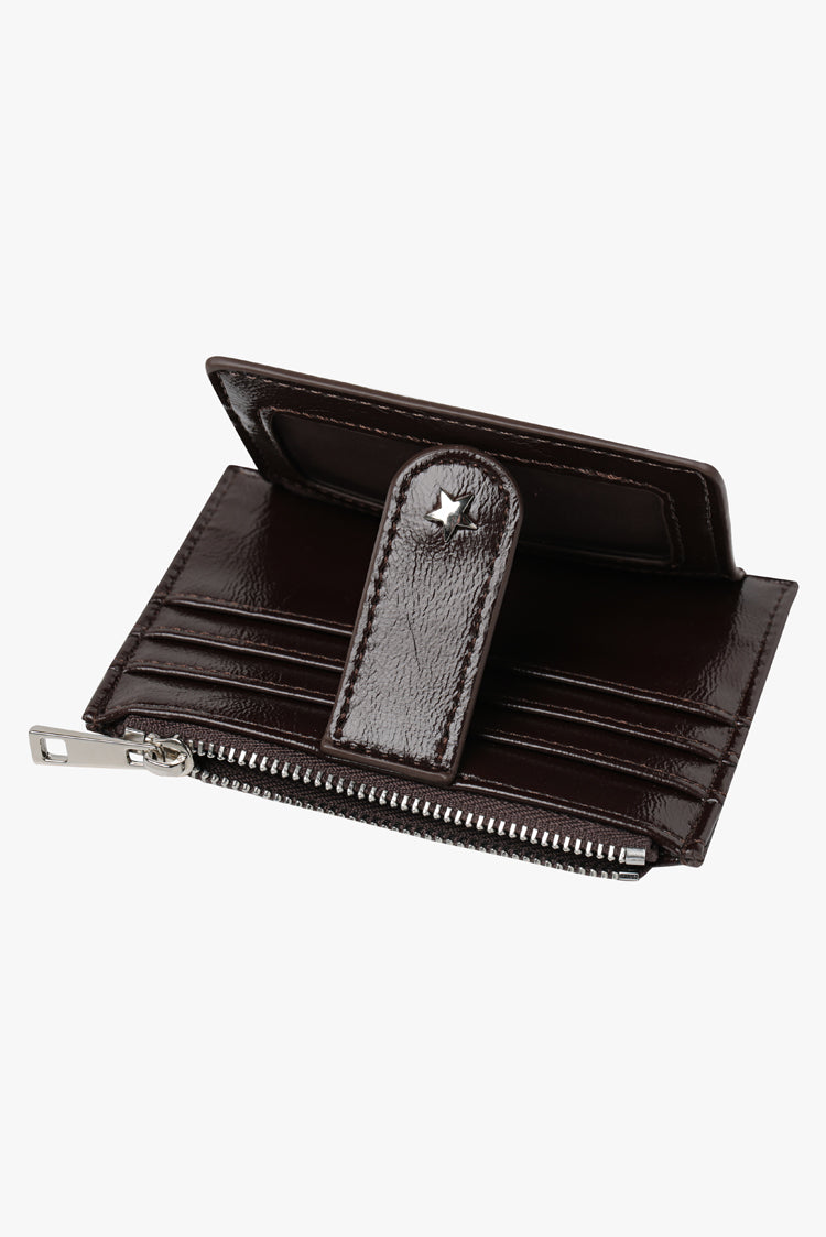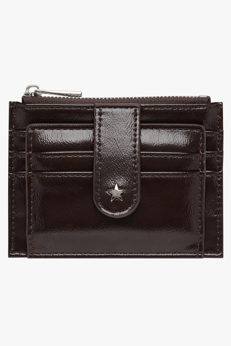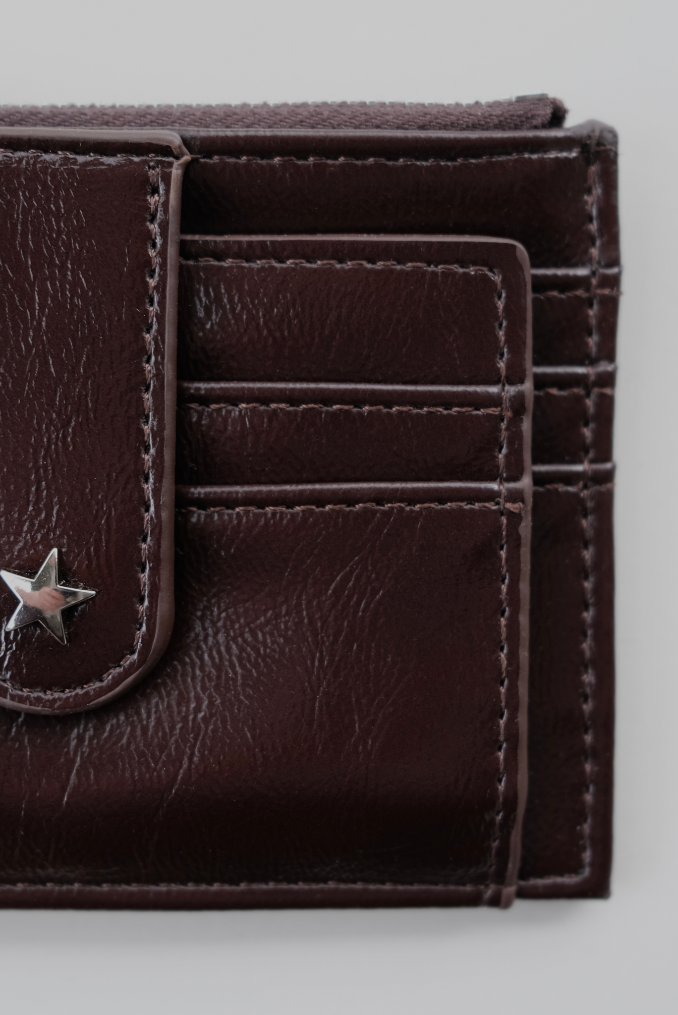 The Daisy Card Wallet is made from dark brown faux leather. This style features a press stud closure, five card slots, one photo / clear card slot perfect for your ID, a zipped coin and notes compartment and one wide card slot on the reverse side. The Daisy is the perfect size to carry in your hand, small handbags and your pocket.